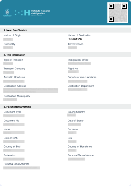 Honduras Migration Pre-Check recovery via email in case of loss or misplacement